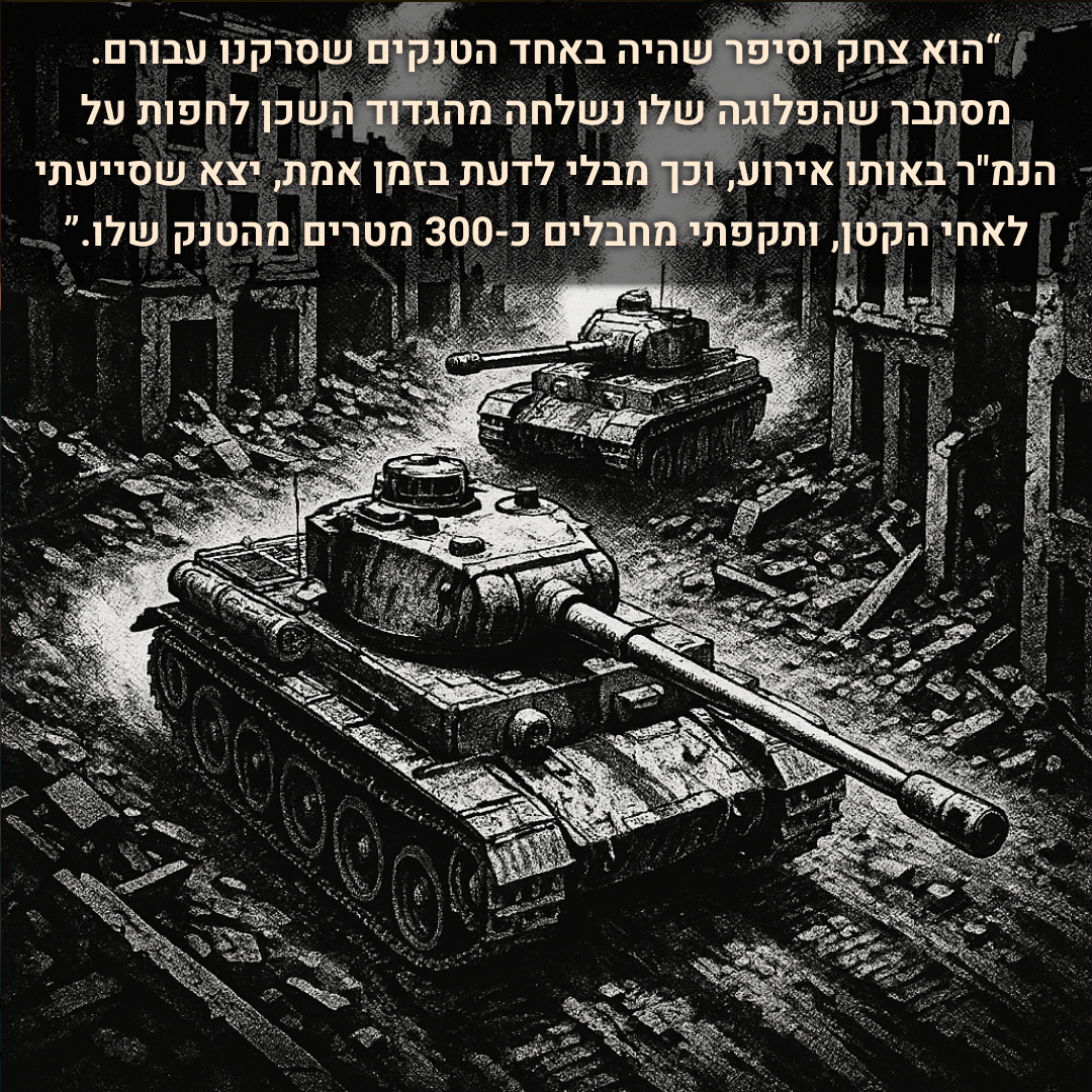 ביציאתו הראשונה של עמית מעזה להתרעננות, החלפנו חוויות, וסיפרתי לו את הסיפור על הנמ"ר שהתחפר. עמית צחק וסיפר שהיה באחד הטנקים שסרקנו עבורם. מסתבר שהפלוגה שלו נשלחה מהגדוד השכן לחפות על הנמ"ר באותו אירוע, וכך מבלי לדעת בזמן אמת, יצא שסייעתי לאחי הקטן, ותקפתי מחבלים 300 מטרים מהטנק שלו."